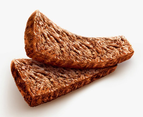 Composição | Carne mecanicamente separada de frango, proteína de soja*, farinha de arroz, farinha de vísceras de frango, farelo de trigo, fécula de mandioca, glicerina, gelatina, hidrolisado de fígado de frango, cloreto de sódio (sal), ácido fosfórico, corante caramelo, sorbato de potássio e aroma de galinha caipira (0,1%). Eventuais substitutivos: miúdos bovinos. Espécies doadoras de genes: *Agrobacterium tumefaciens, Arabidopsis thaliana, Bacillus thuringiensis, Streptomyces viridochromogenes. |